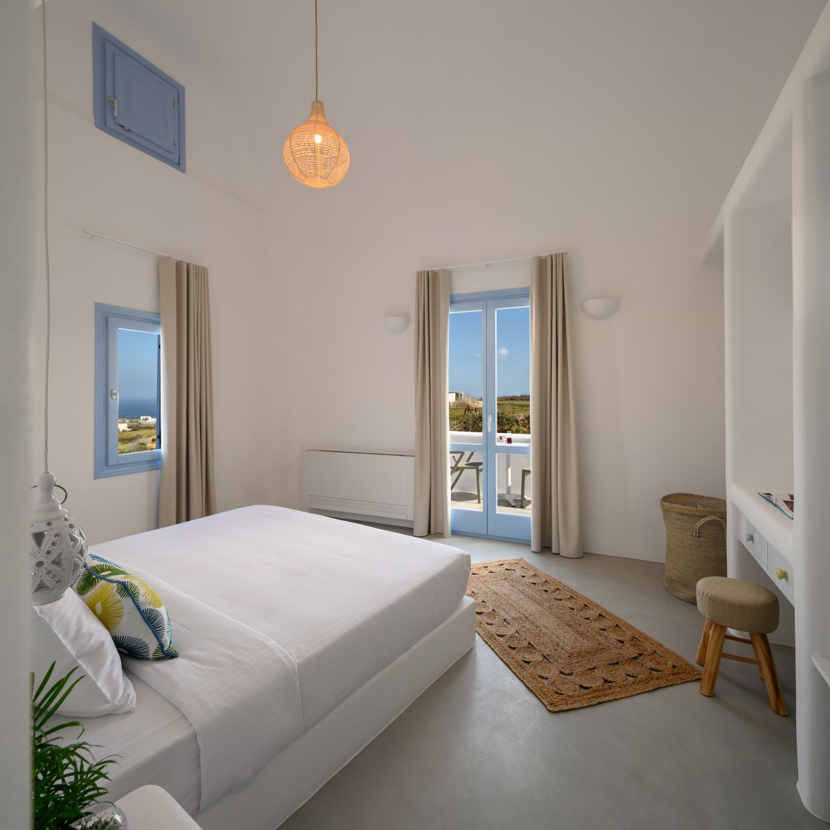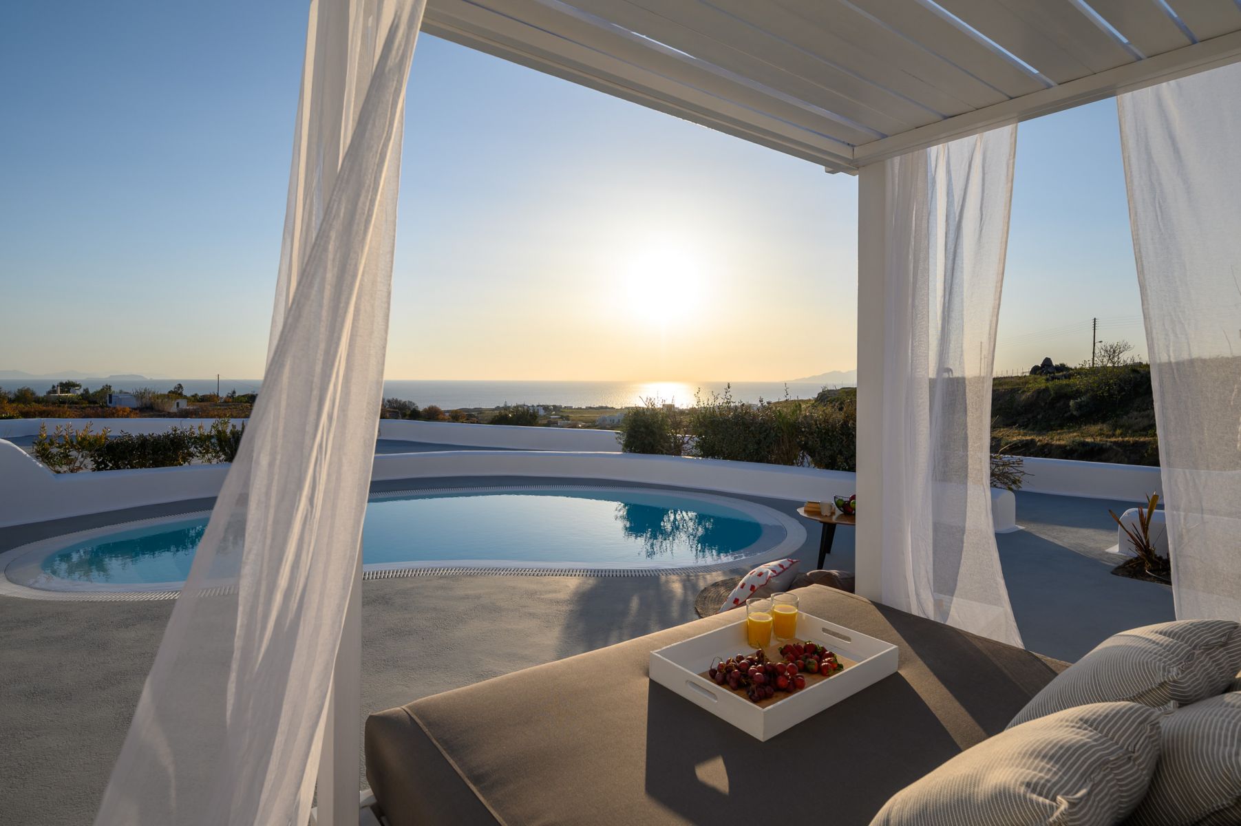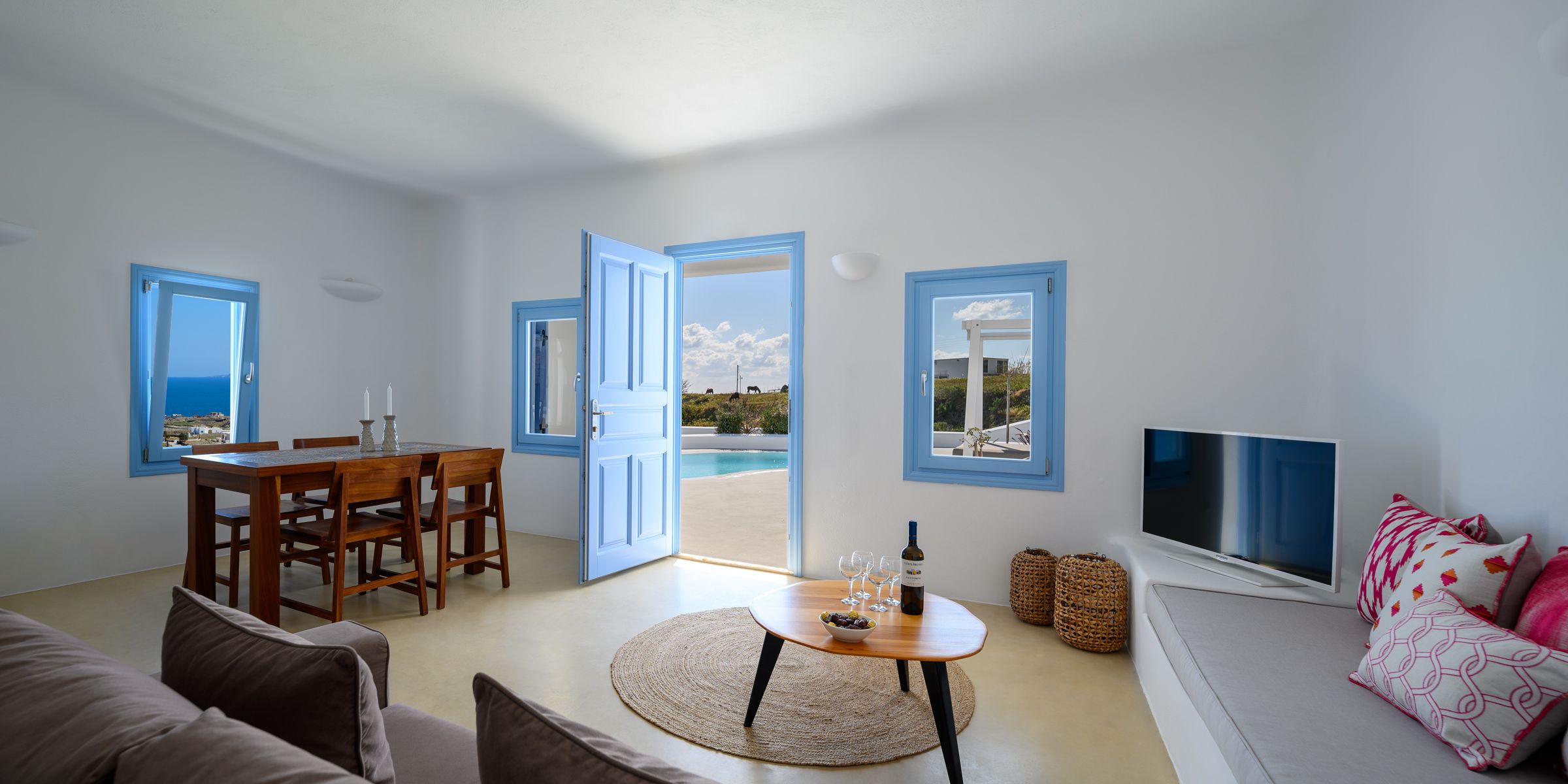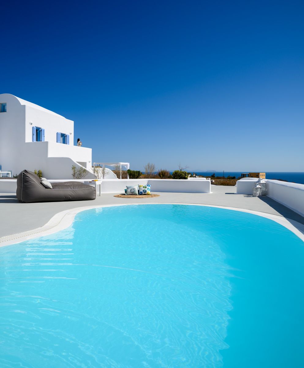 The Supreme Villa features two spacious bedrooms, each one with built-in king size beds and its own bathroom in every room. It has a kitchen and dining area a commodious living room with comfortable sofa bed that opens up to a private spacious veranda furnished with sitting area, comfortable sunloungers and a swimming pool offering breathtaking views to the Aegean sea.