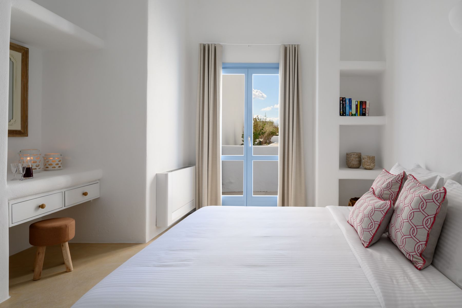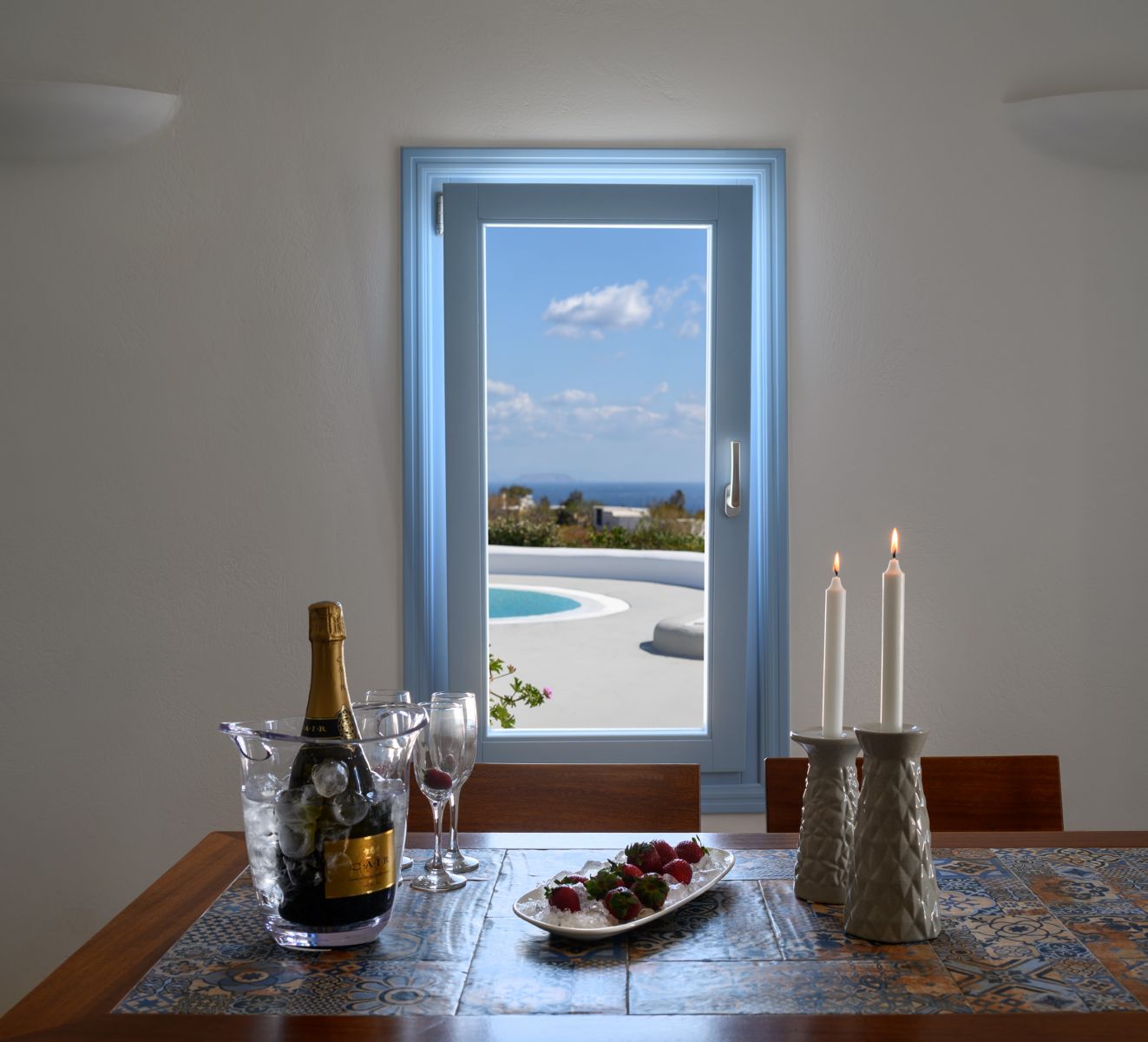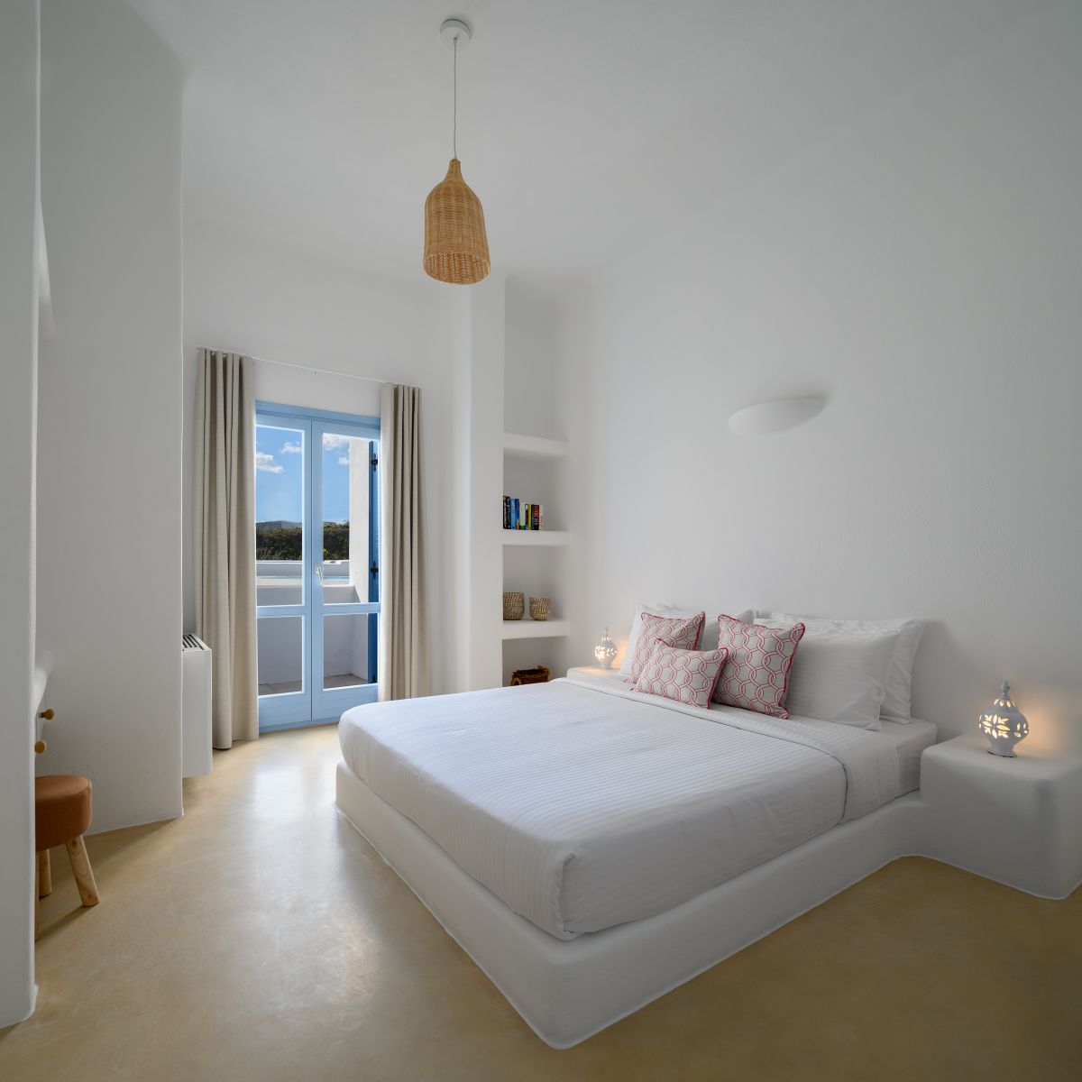 The Supreme Villa features two spacious bedrooms, each one with built-in king size beds and its own bathroom in every room. It has a kitchen and dining area a commodious living room with comfortable sofa bed that opens up to a private spacious veranda furnished with sitting area, comfortable sunloungers and a swimming pool offering breathtaking views to the Aegean sea.